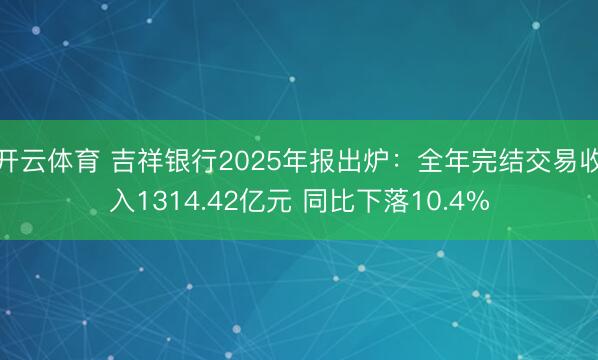 3月20日金融一线音信,吉祥银行当天发布2025年报。数据融会,2025 年,集团完结交易收入 1314.42 亿元,同......