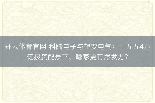 跟着国度电网“十五五”万亿投资目的的鼓动,电力斥地行业成为老本阛阓温雅的焦点。在这场投资盛宴中,科陆电子与望变电气代表了......