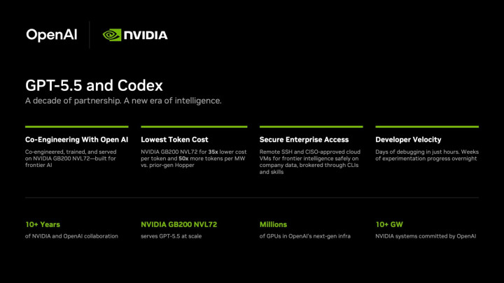 英伟达在新闻稿中指出,OpenAI发布的GPT-5.5模子是其最新前沿效能,当今已在NVIDIAGB200NVL72机架级系统上启动,为智能体编程应用Codex提供中枢能源。