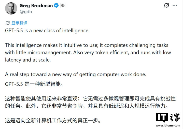 OpenAI总裁格雷格·布罗克曼(GregBrockman)强调,GPT-5.5的中枢破裂,在于大约以更少的带领完成更多任务,最大的亮点在于在处理隐隐问题时,展现出更强的自主性,能快速贯穿用户意图,自主蓄意并膨胀多措施复杂任务,在代码编写调试、在线说合、数据分析及跨用具操作等场景施展出色。