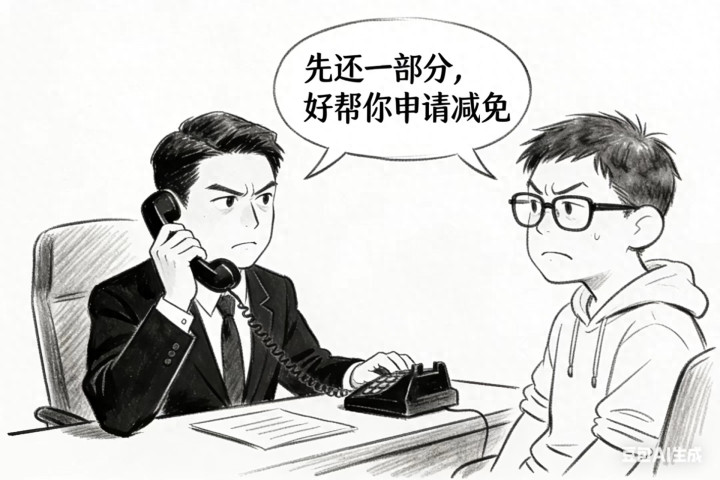 “您先还一部分,默示一下还款忠心,我这边帮您苦求减免。”“先凑个30%进来,我保证公司会给您停催延期。”