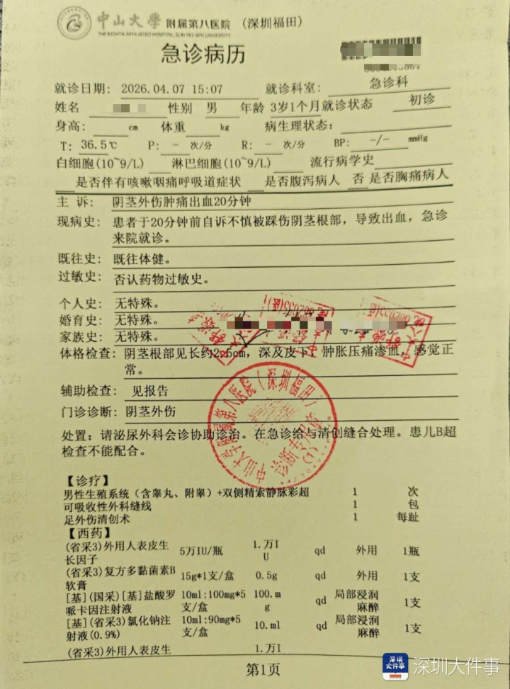 近日,刘先生(假名)向南齐N视频记者反馈称,本年4月7日下昼2时45分许,其带着三岁男儿在深圳市福田区卓悦中心奈尔宝家庭中心游玩时,小一又友在滑梯网状平台位置疑似遭到生分红年男性伏击枢纽,变成生殖器根部出现一处2.5厘米的扯破伤。刘先生说,事发时我方小孩在滑梯那边玩,家长不才面看着,莫得随着上去,仅仅看着他上去然后滑下来。“然则临了一次上去,过了几十秒没下来,家长去找他,走到阿谁楼梯口就听到尖叫声,两三秒钟后赶到小一又友傍边时,发现还有一个成年男人也在那。然后我问我宝宝,他就只会说他底下痛,我掀开他的裤子看了一下,把我吓一跳,生殖器根部位置有一个撕扯伤。随后连忙去了最近的病院急诊,医师就跟我说是有2.5公分的扯破伤口,那时病笃清创缝合了6针。”