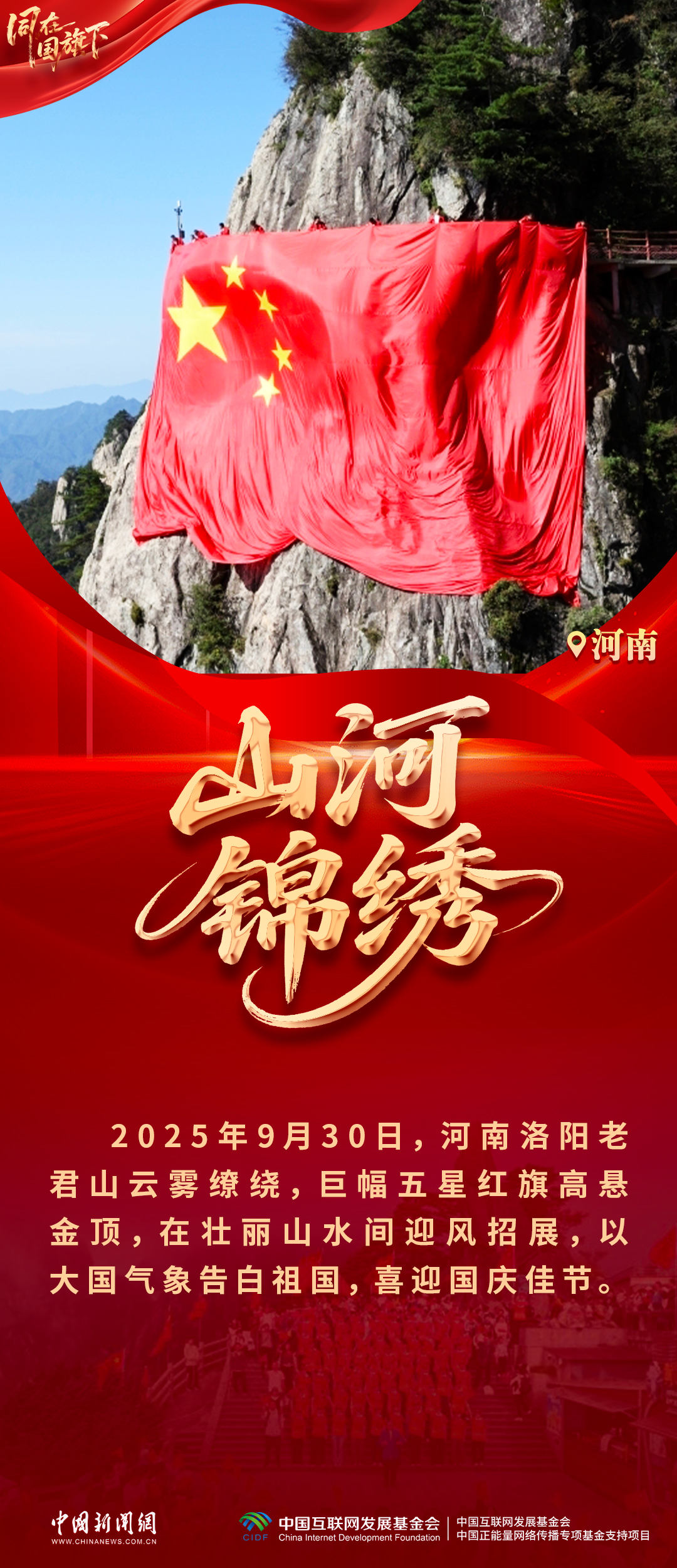 一面红旗,承载着最朴素的家国情感。它飞舞在山川湖海,定格在路径一会儿,藏在每一次安身、每一张合影、每一份心动里。走过万里江山,